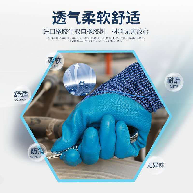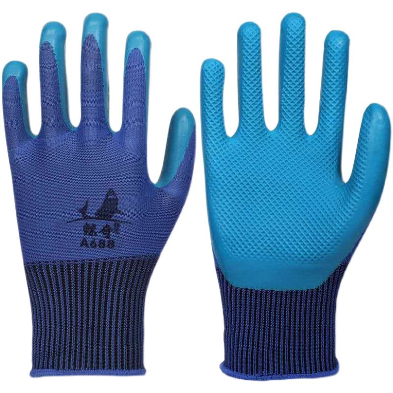 Great show off whale Qi A688 gloves rubber dipping construction site work plastic latex embossed non-slip wear-resistant breathable