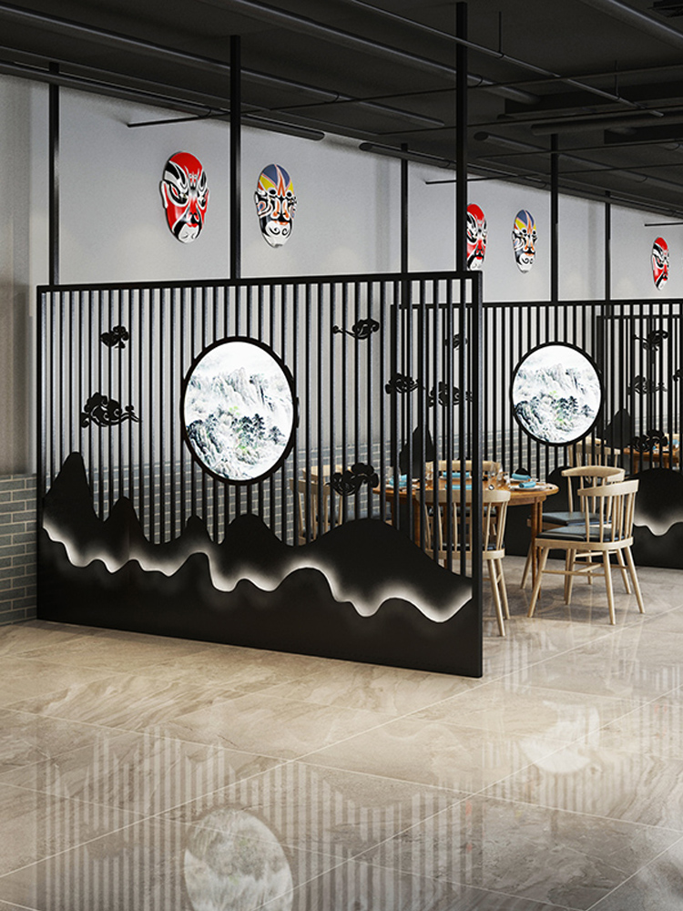 Hotel deck partition New Chinese Wrought iron screen grille decoration Commercial restaurant Hot pot shop private room hollow entrance