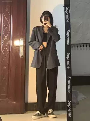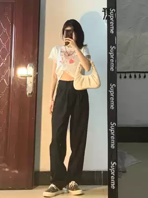 LINKA summer models Joker wide leg pants women's high waisted black slim suit pants straight tube gray mop floor