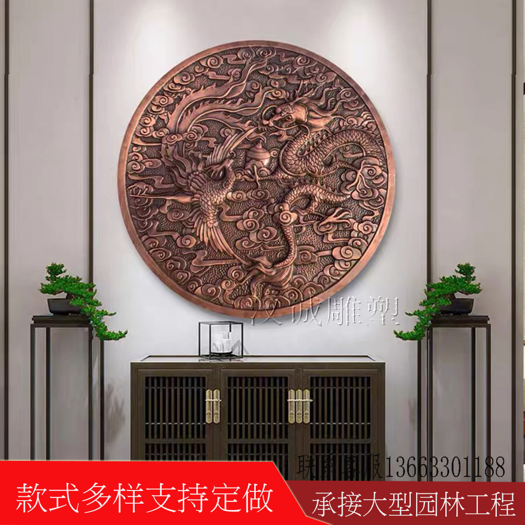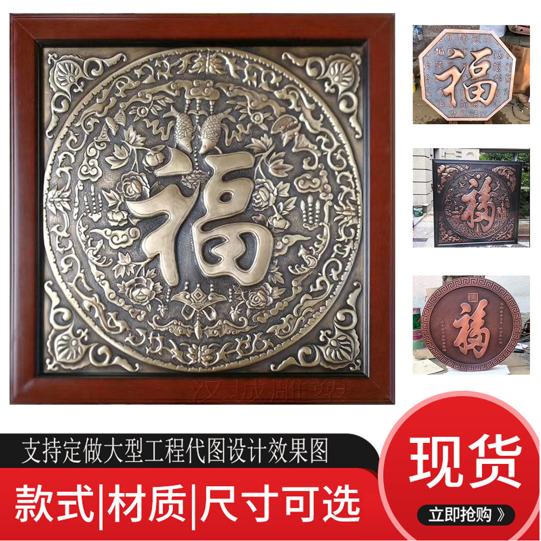 Forged copper relief copper engraving Fu character copper plate painting glass fiber imitation copper mural porch decoration background wall sandstone carving
