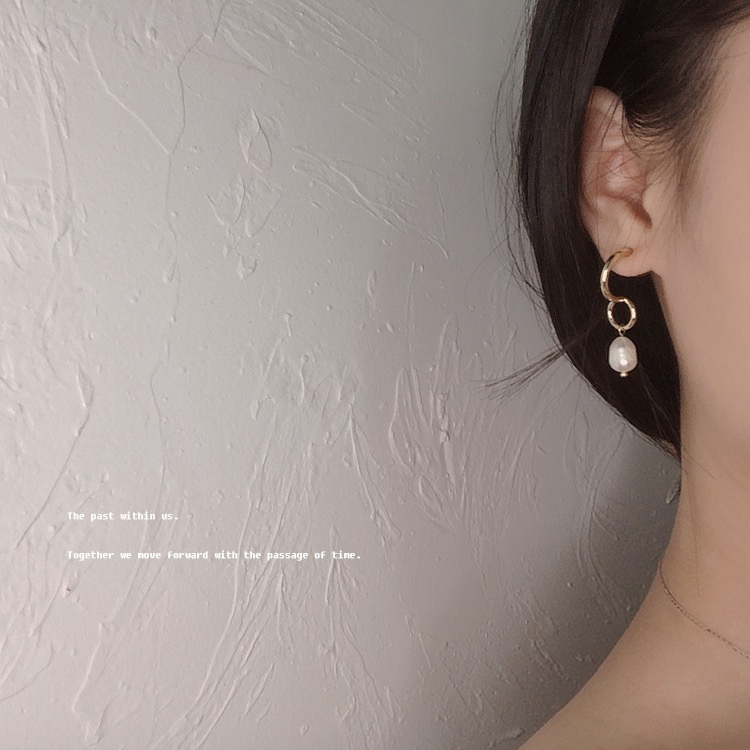 s925 sterling silver texture French court style temperament baroque natural pearl curved line long version earrings ear pin women