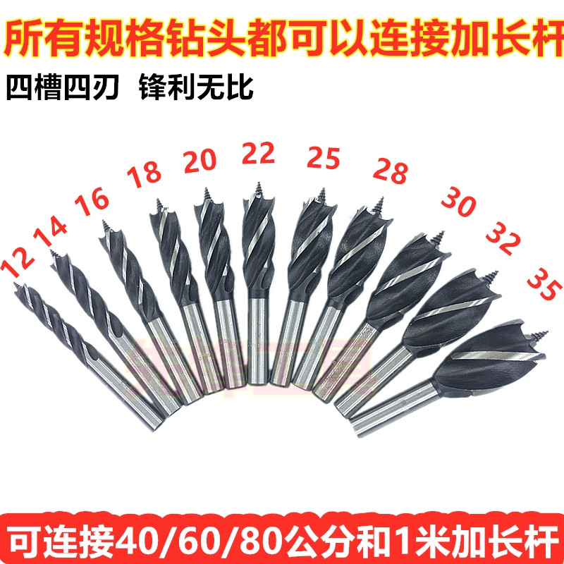 Lengthened woodworking drill bit twist drill template drill four-slot drill support Luo drill extended rod connection woodworking drill
