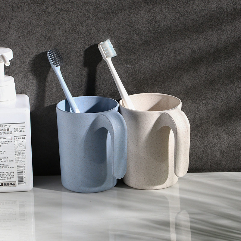 Wheat straw with handle mouthwash cup household wash cup brushing cup anti-fall plastic water cup large-capacity handle cup
