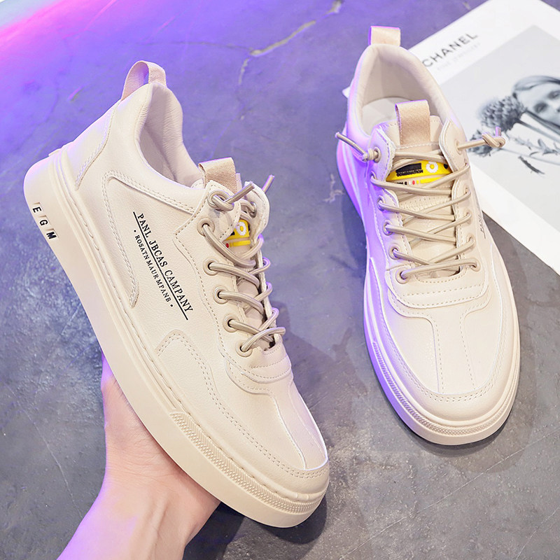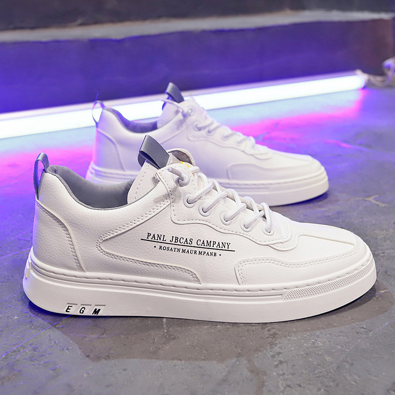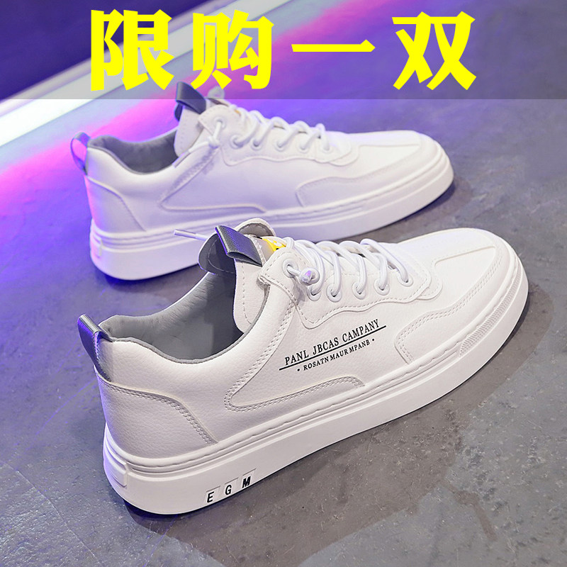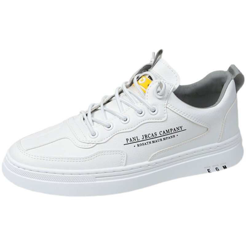 Leather white shoes men's autumn new breathable inner heightening casual shoes all-match trend elastic band white sneakers men