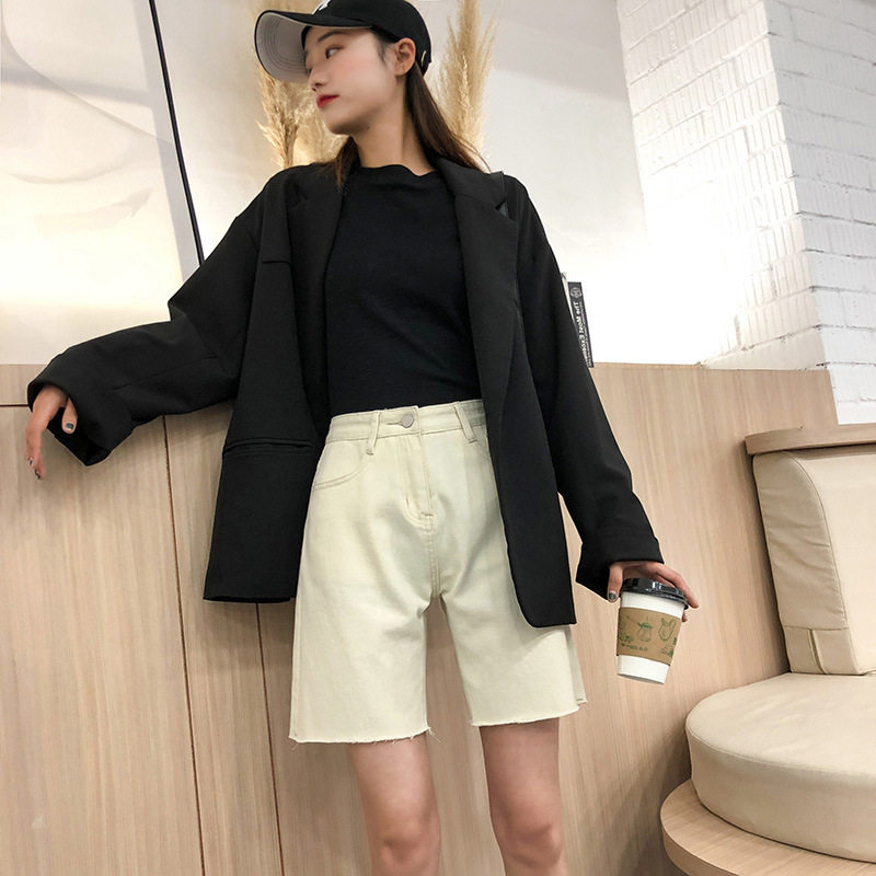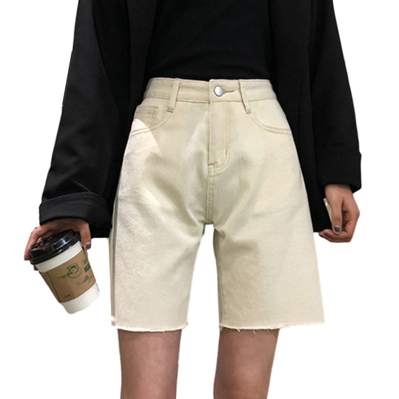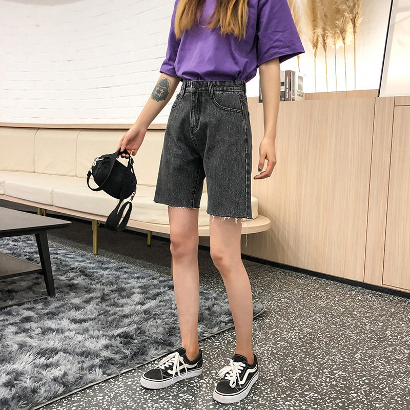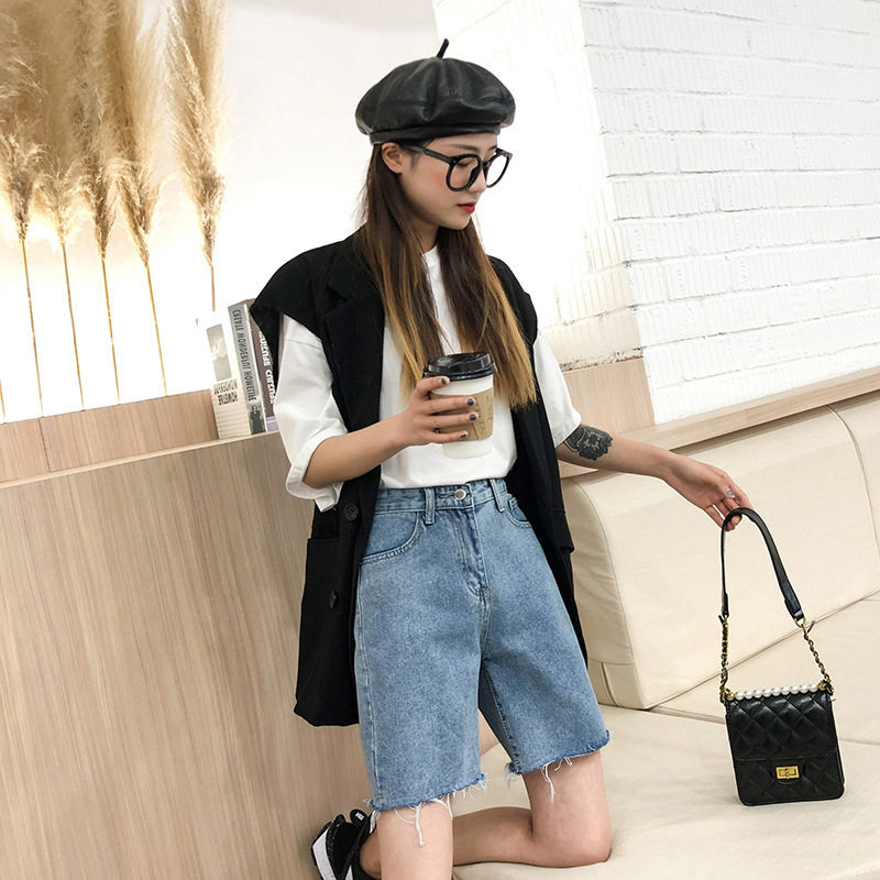 Korean five-point denim shorts women's summer 2021 new ins tide high waist loose Hong Kong style straight 5-point pants