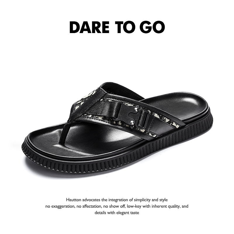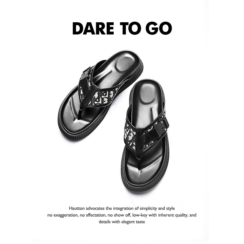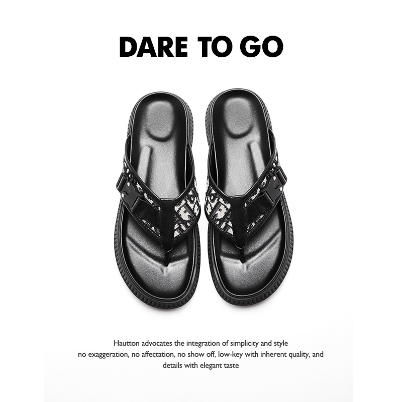 HT Hao Dun Sandals Summer New Soft Bottom Flip Flops Tide Anti-slip Anti-Odor Wear-resistant Men's Flip Flops