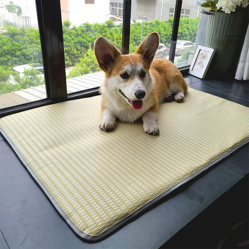 Three-color ice rattan mat dog cool mat-beige three-color ice rattan mat dog cool mat-light ash hit waterproof mat dog cool mat-orange green