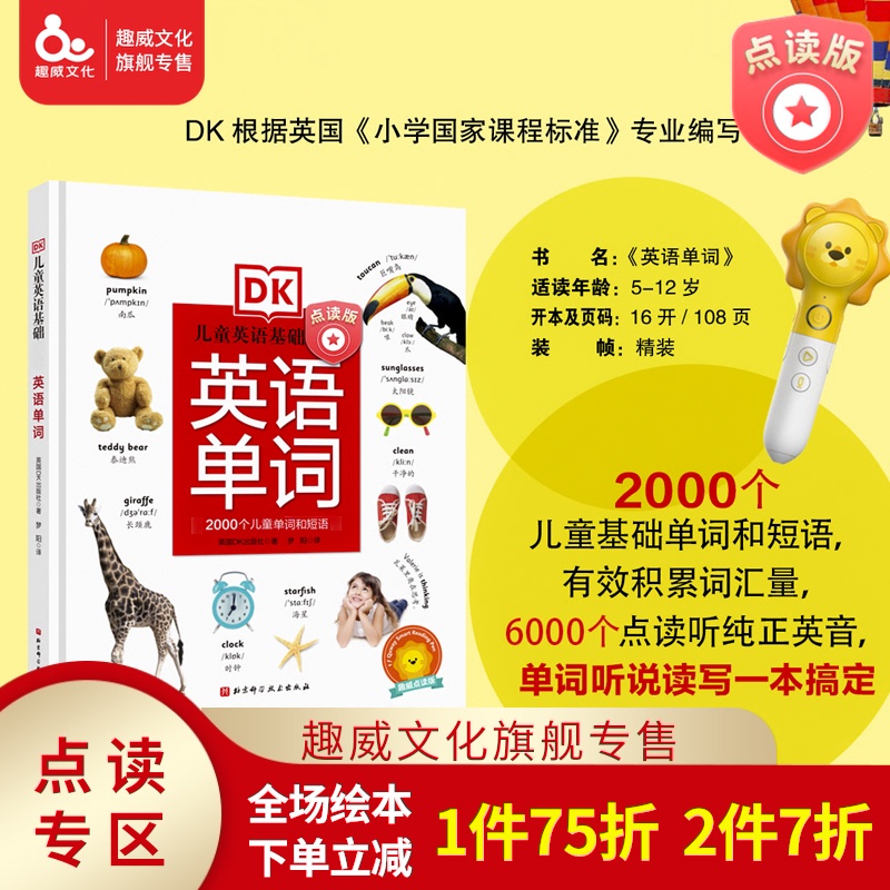 Quwei point reading version DK English 2000 words Chinese and English bilingual point reading 3-8 years old English pronunciation convergence