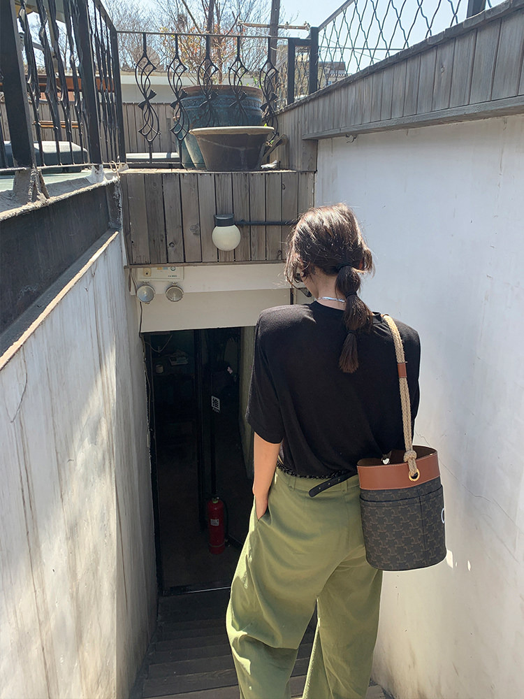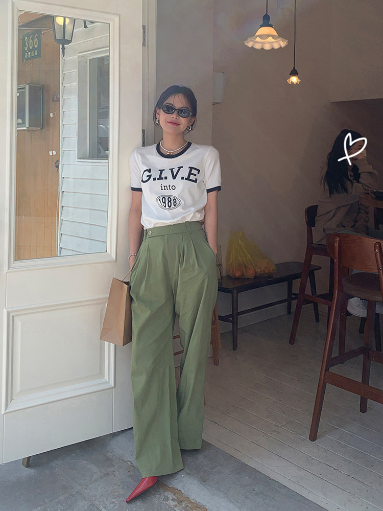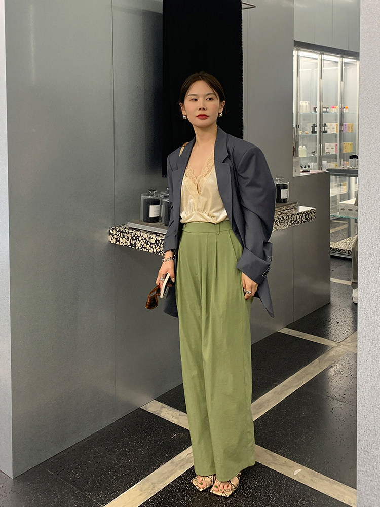 wxlstudio Pear - shaped girl saving pants Buffalo Army green broadleg pants high waist 2022 spring and autumn models