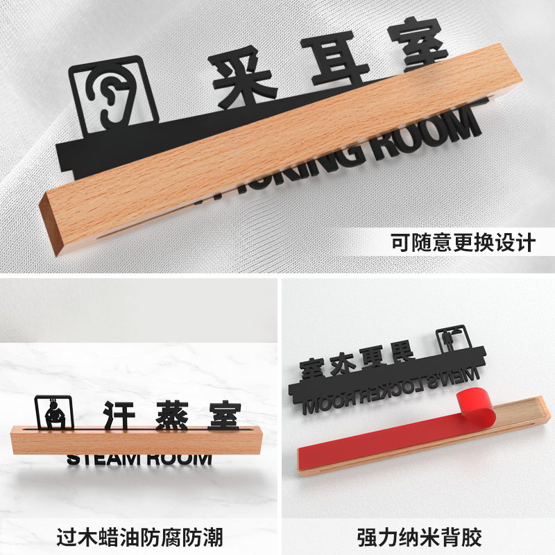 Solid wood high-grade massage bath sign massage room ear picking room massage room bath room sweat steam room foot therapist room number house number prompt instruction creative personality acrylic brand custom