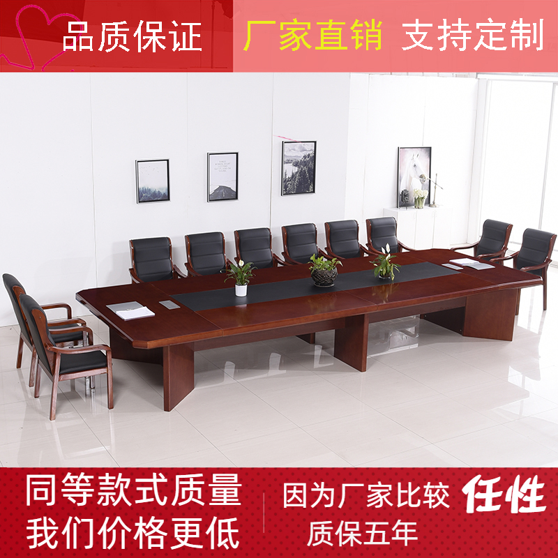 Conference table simple modern solid wood leather desk large table square negotiation table and chair combination