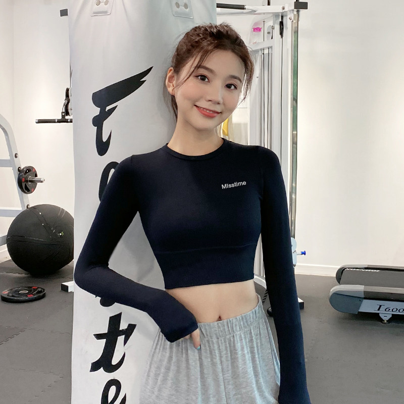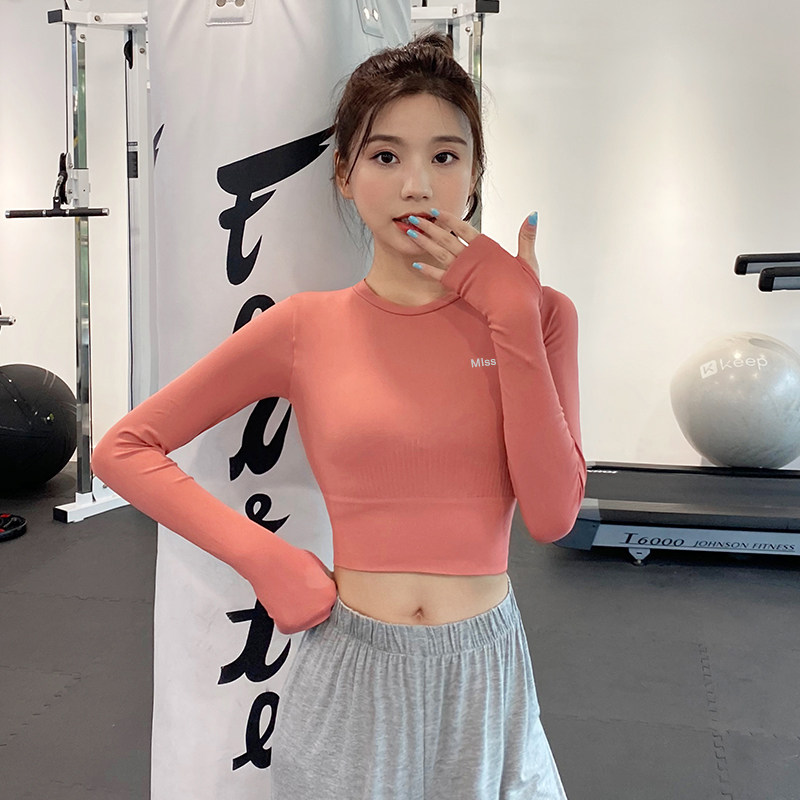 Temperament sports top women's running tight T-shirt room net red slimming fitness clothes spring and summer long-sleeved yoga clothes short