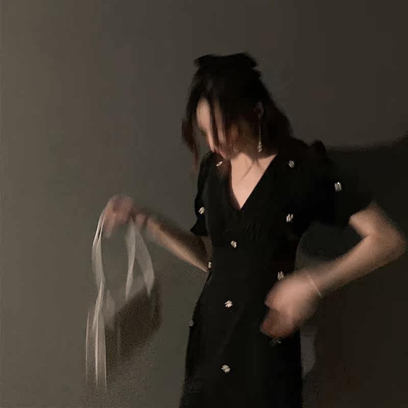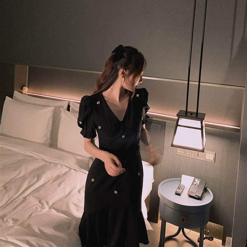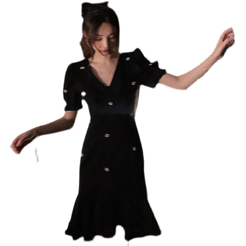 Large size temperament French tea break small black dress female summer fat mm Western style Hepburn wind cover the belly to show thin dress to reduce age