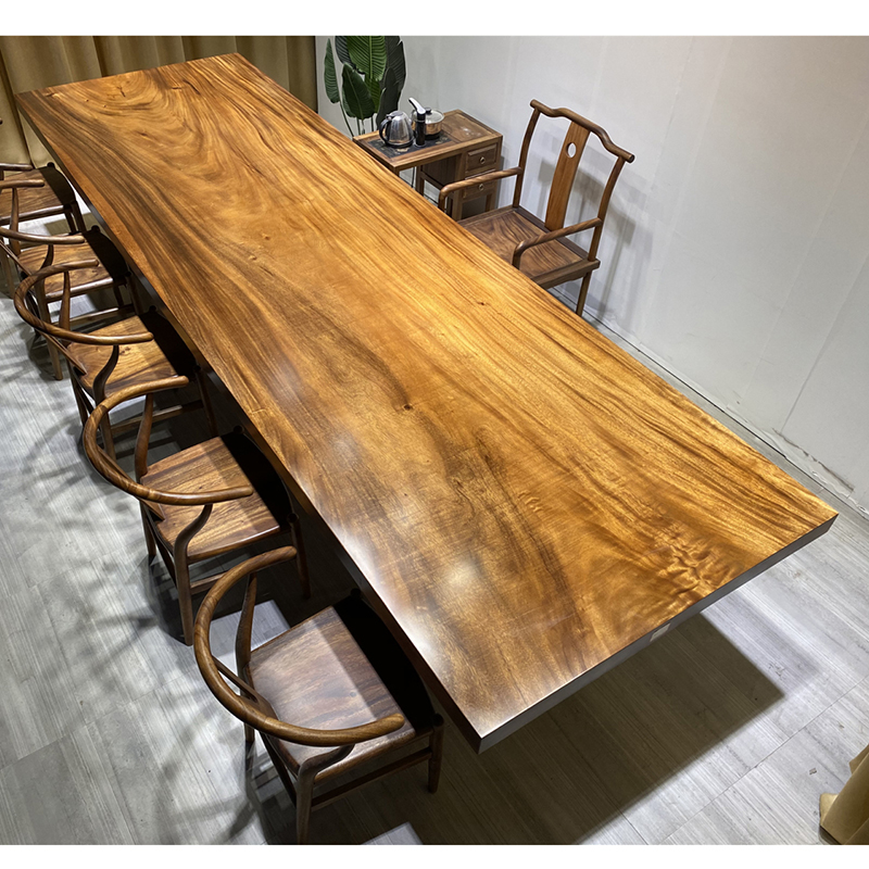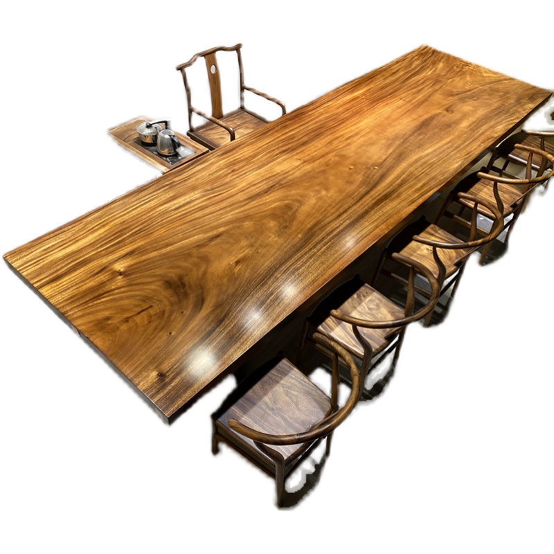 Walnut solid wood large board tea table and chair combination log dining table solid wood whole book tea table 390-120-8 5