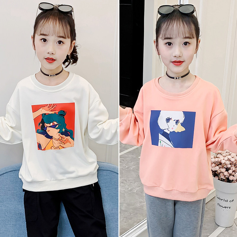 Girls' long-sleeved T shirt 2021 new western children's spring costume cartoon hoodie big children's loose casual jacket