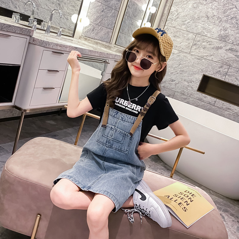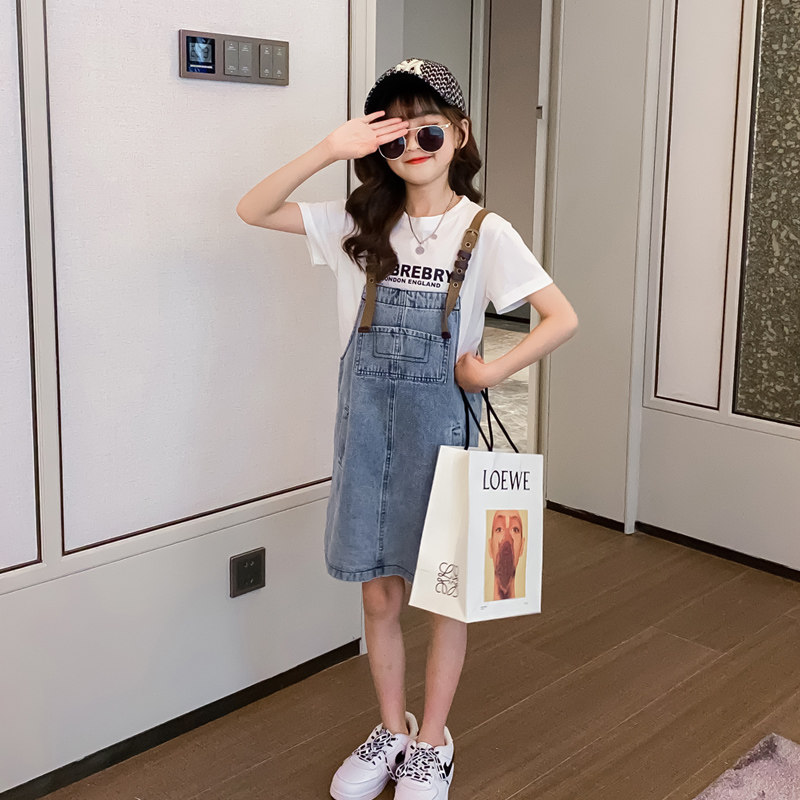 Girl Cowboy Cuddling Bag Skirt Summer Dress Suit 2022 New Foreign Korean Version Trendy Children Summer Great Children's Dress