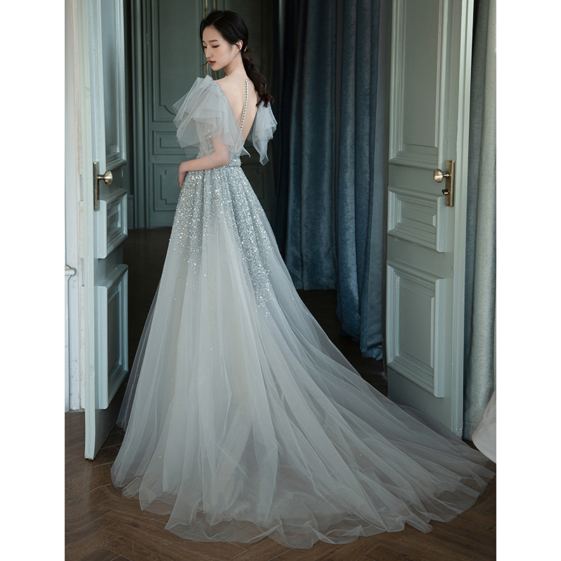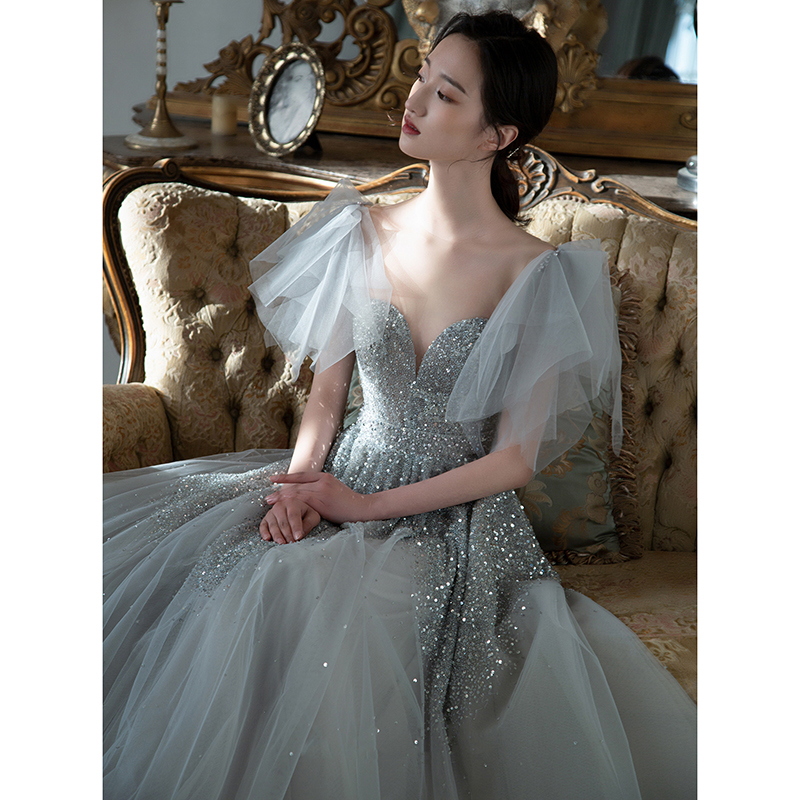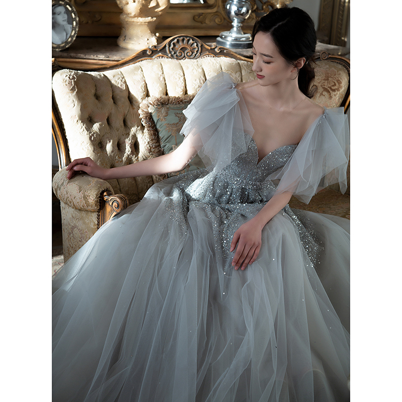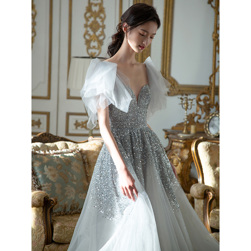 Light wedding dress 2021 new evening dress light luxury minority high-end banquet temperament usually can wear long women marriage