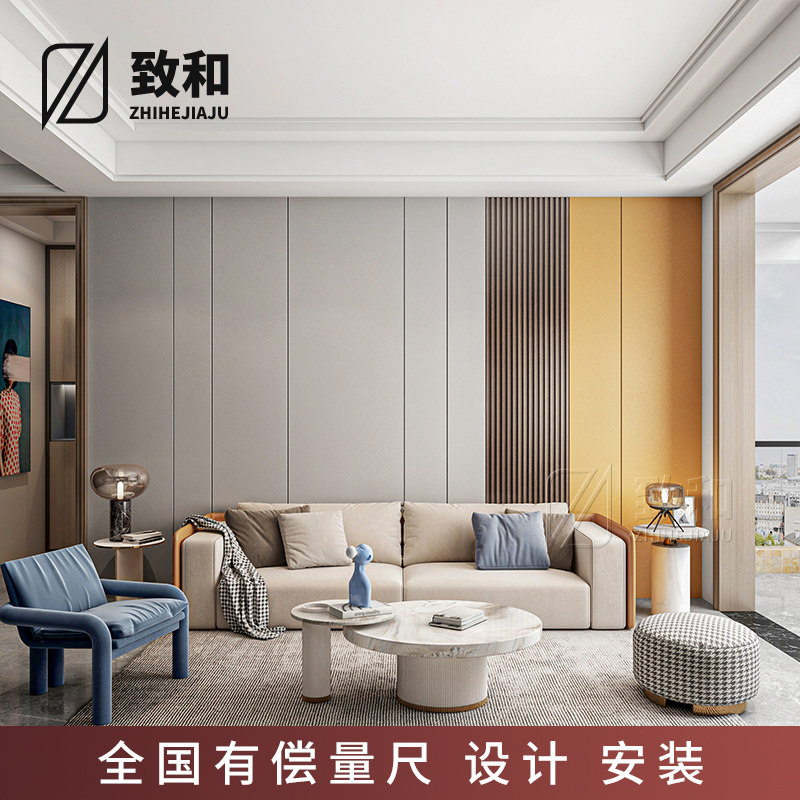 Solid wood grille hard pack sofa background wall living room modern light luxury TV bedroom bedside wood panel customization