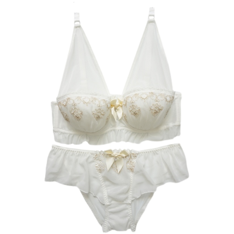 Day Ensemble Sexy Girl Gold Silk Embroidery No Steel Ring Underwear Suit Comfort Sweet and Fly Ancient Lace Fly Side Underwear