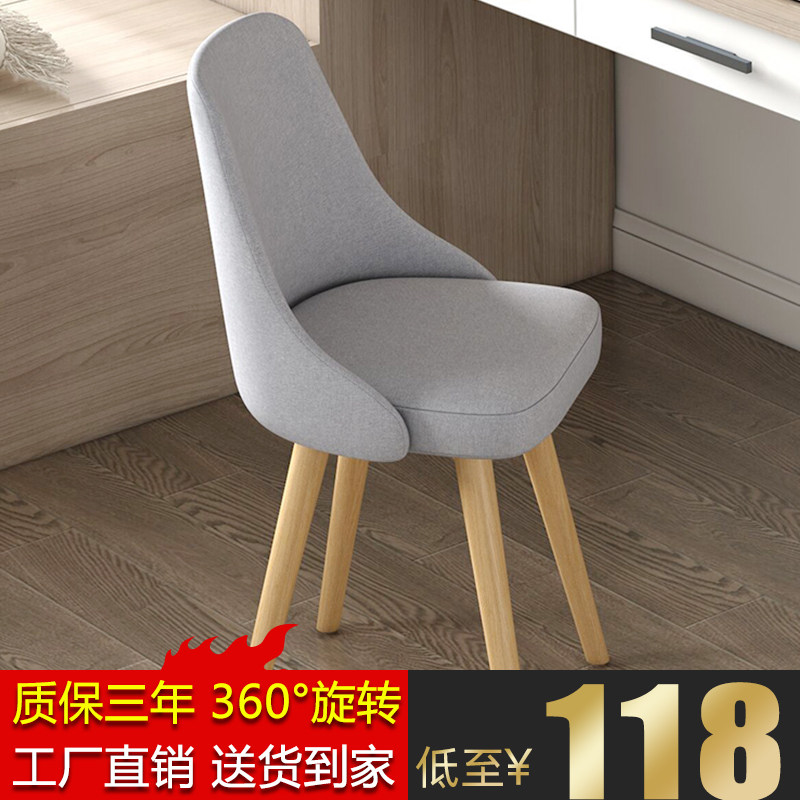 Temperament silver gray - solid wood legs - rotatable non-removable - desk chair