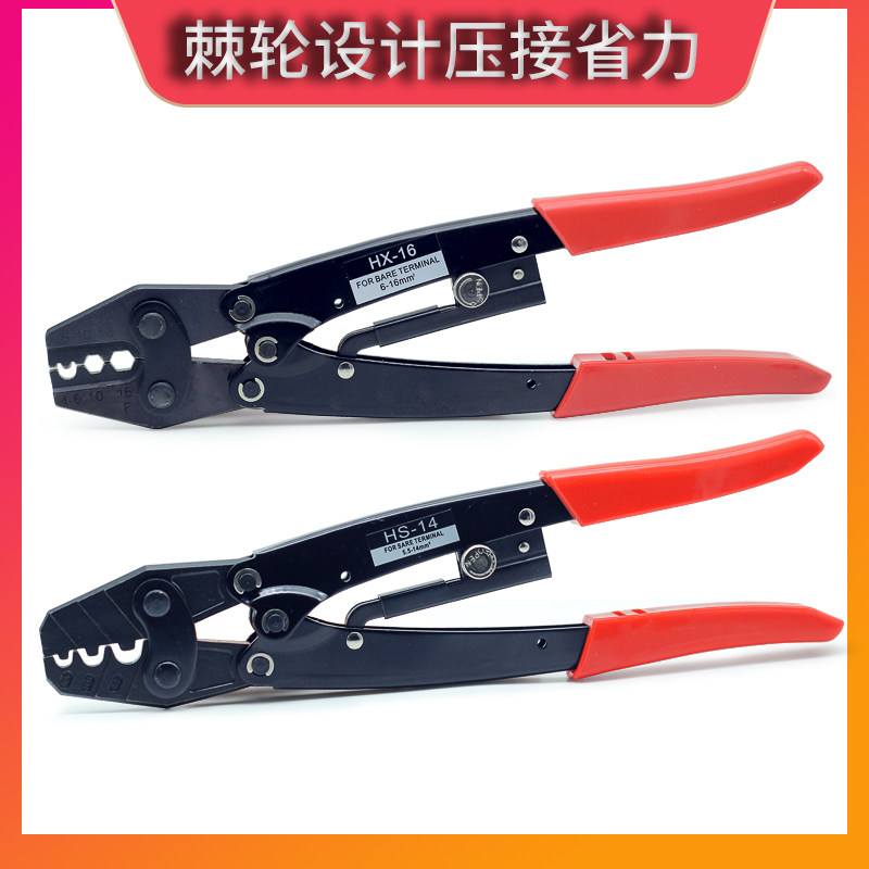 Ratchet-type nude terminal press wire pliers HS-6L 8 10 16 22 38HD-6 labor-saving cold press wire cap wiring pliers