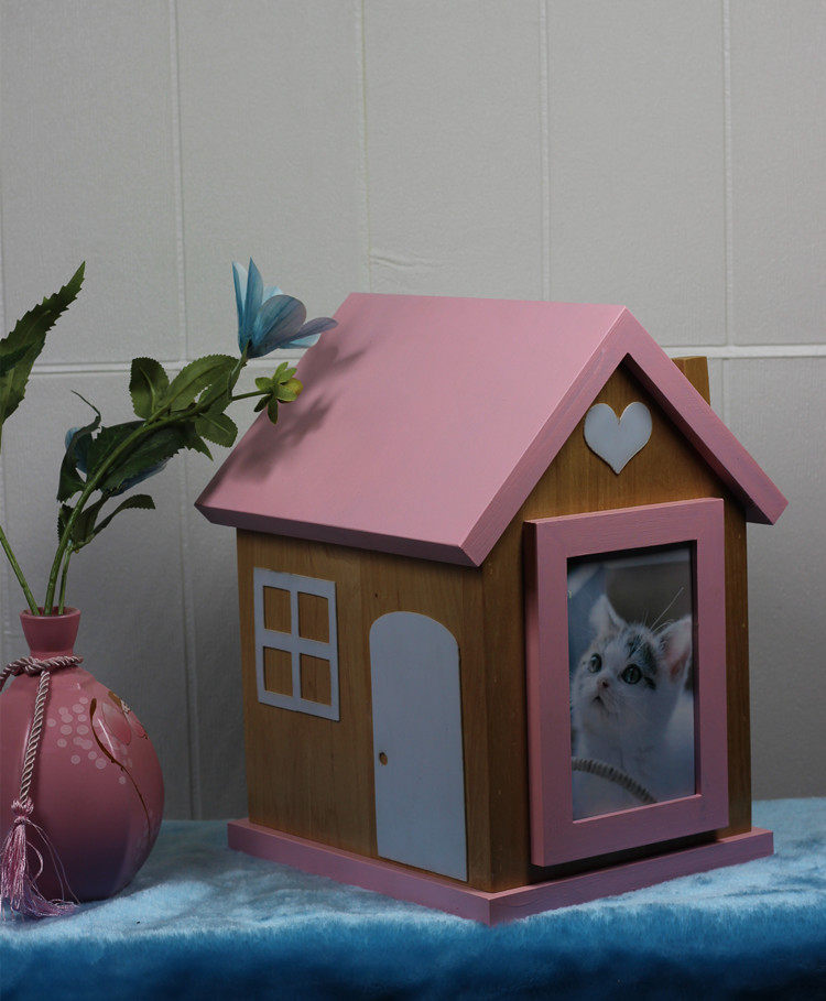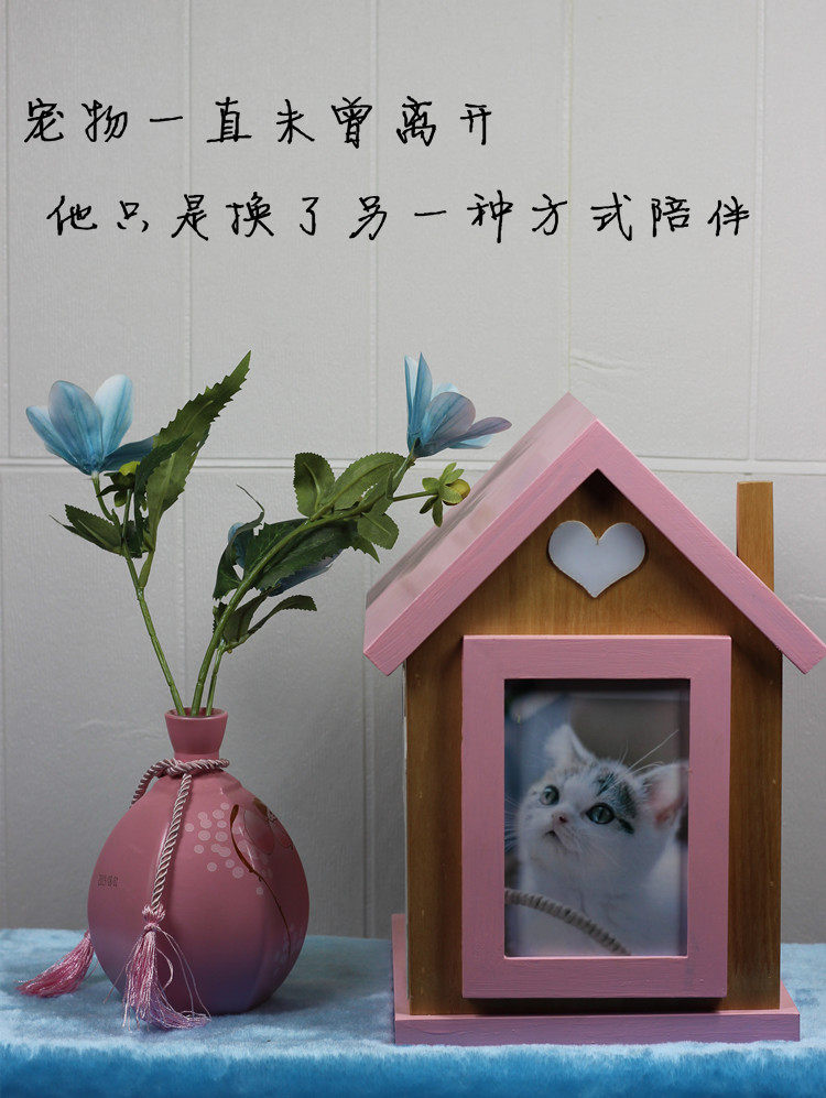Tie wooden house pet cat dog urn small house cat and dog ashes storage commemorative photo pet coffin