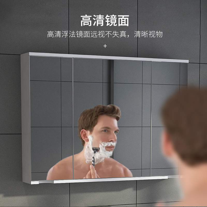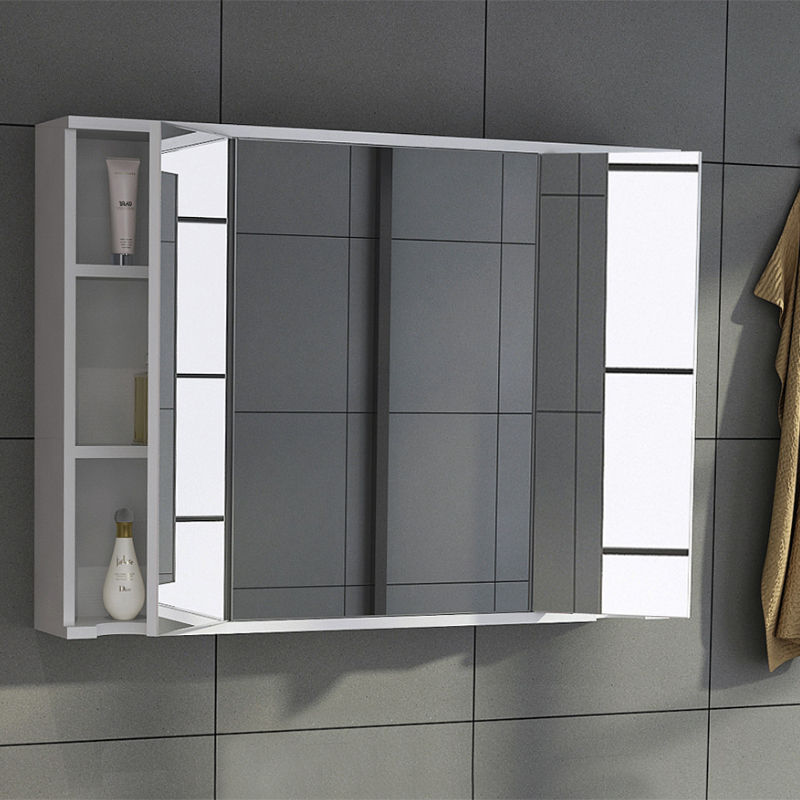 Hidden folding Feng Shui solid wood wall-mounted bathroom mirror cabinet toilet wall-mounted bathroom mirror box shelf mirror