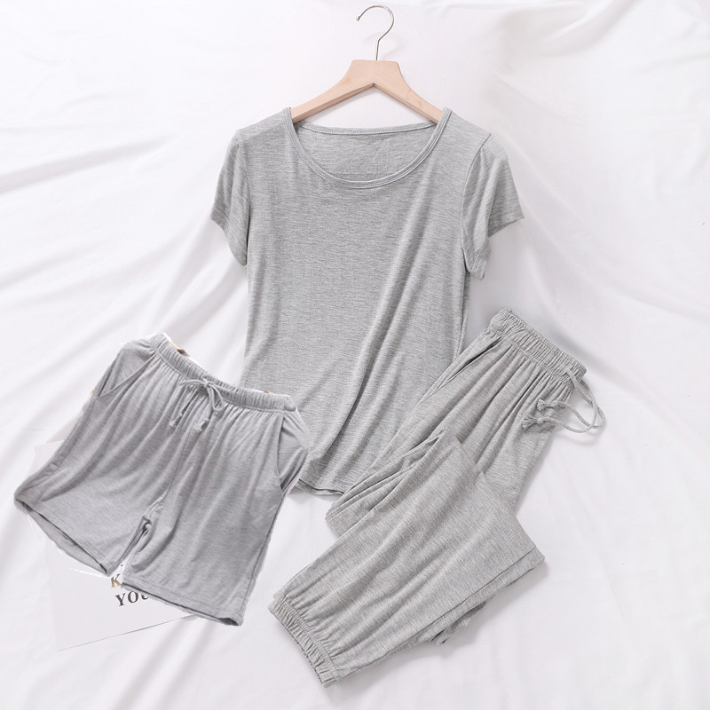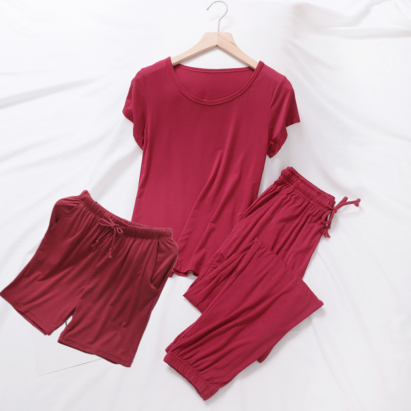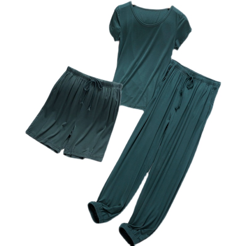 Sleepwear woman 2022 New summer Modale short sleeves shorts long pants thin and large size Three sets of home clothes