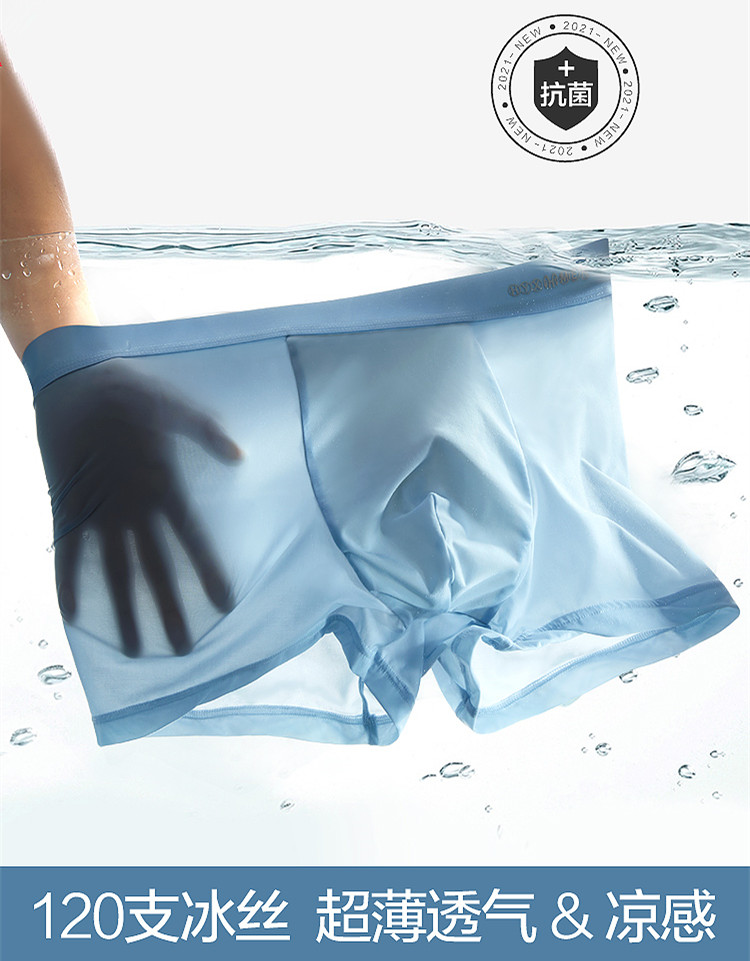 Men's underwear Summer ice silk transparent ultra-thin Four corner shorts Men's pure cotton stalls Sexy breathable pure Color Four-corner trouser head