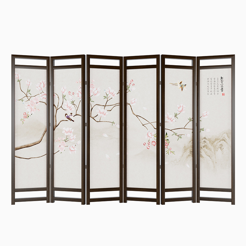 New Chinese screen partition living room Flower and bird mask meeting room modern simply folding mobile tea room folding screen