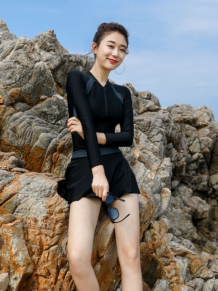 CK QIOM one-piece swimsuit female summer students conservative thin belly covering belly 2021 new long sleeve size fat mm swimsuit