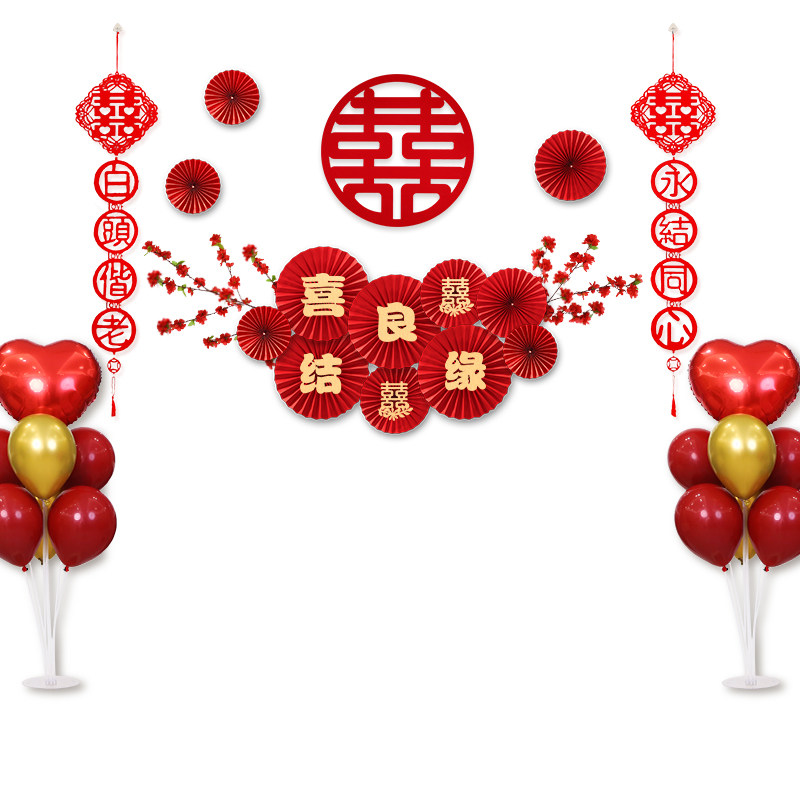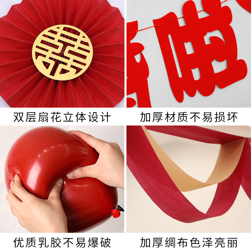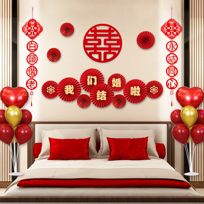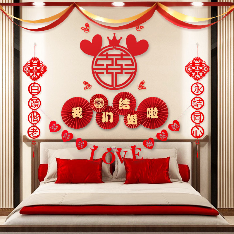 The wedding room is arranged to pull flowers for men and women, the bed head is hi word pull flowers, the new room living room background wall decoration wedding supplies