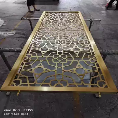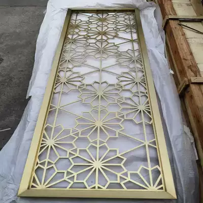 Brushed rose gold stainless steel partition screen Aluminum carving hollow lattice entrance Titanium alloy carving laser relief customization