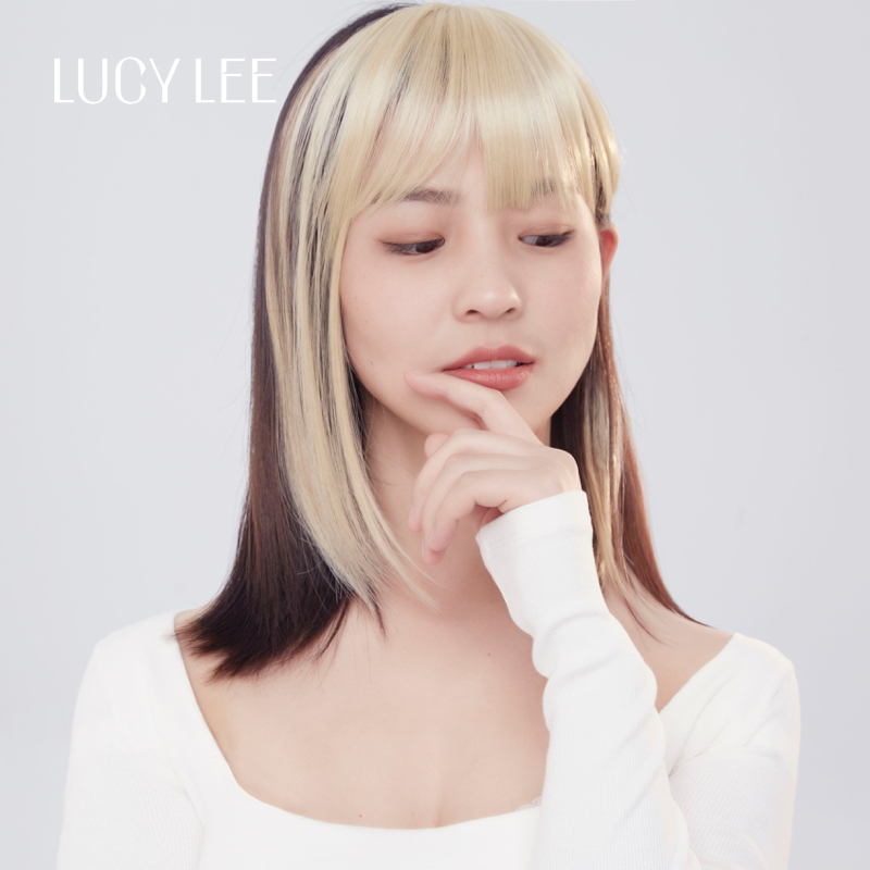 LUCY LEE YIN AND YANG two-color LIUHAI NET RED WIG patch hair block natural incognito repair black gold larry