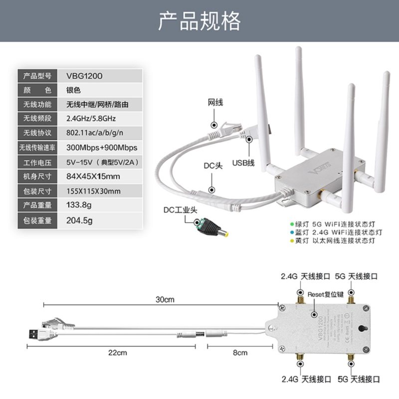 VBG1200 dual-band wireless bridge relay routing new product VAR1200-H dual-band Gigabit network interface 3 (including POE output and built-in fan)