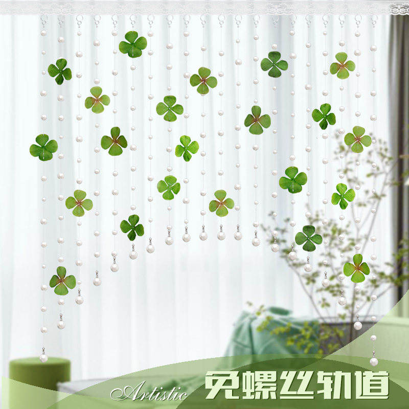 Lucky four-leaf clover crystal bead curtain door partition curtain living room bedroom European pastoral bead curtain free punching Mijia bead curtain
