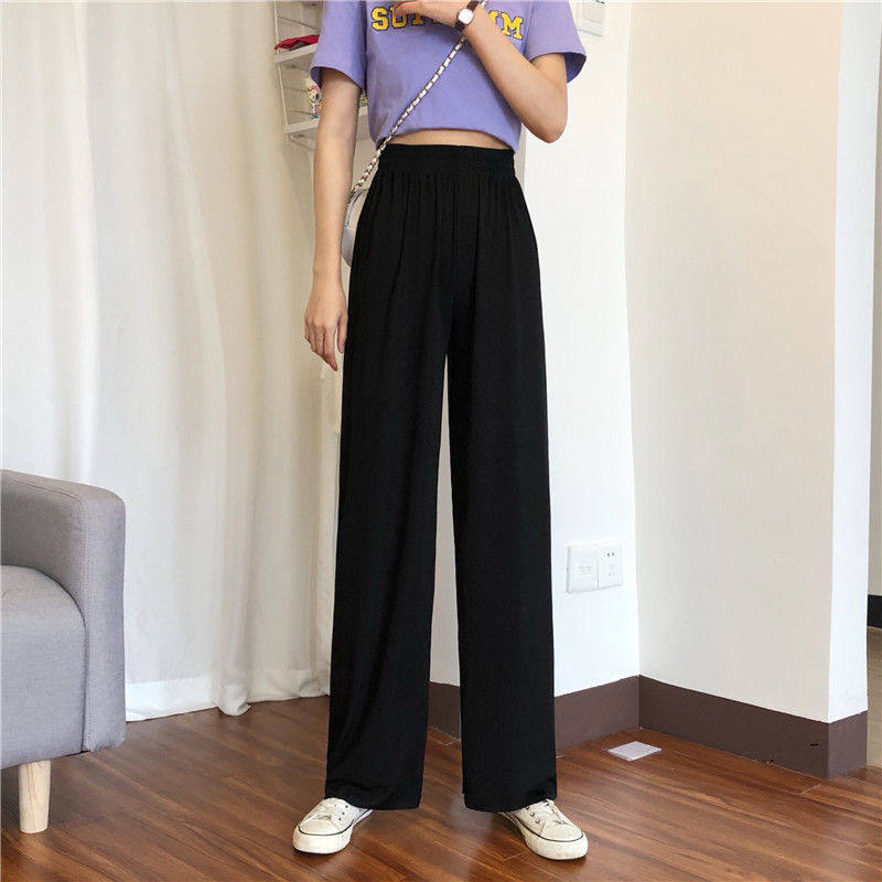 Ice Silk Broadlegged Pants Woman Spring Autumn High Waist Pituality Black Loose Summer Thin style Casual Straight Cylinder Pendant Sensant Trousers