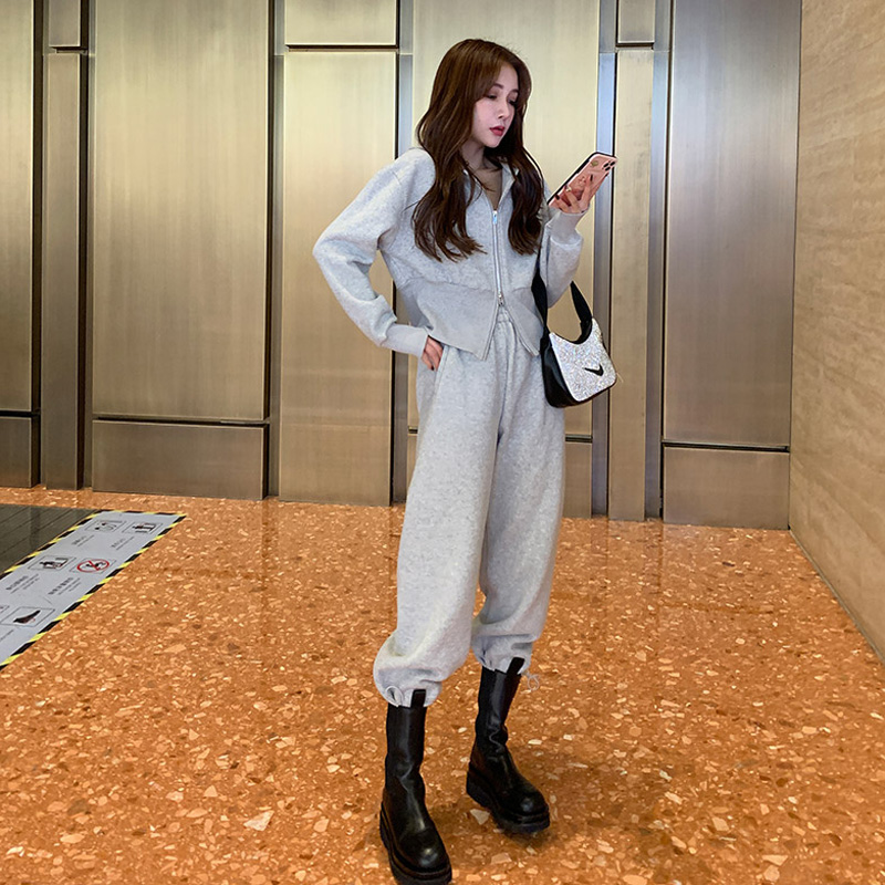 Casual Sports Suit Women's Spring Autumn Season 2022 New Fashion Ocean Fried Street Sweatshirt Broadlegged Pants Two Sets Eben