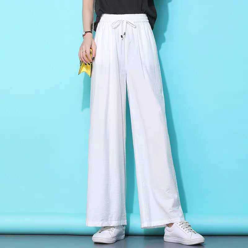 High waist loose wide leg pants women's 2021 summer new ice silk pants slim thin large size straight casual pants