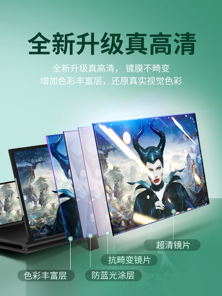 Mobile phone screen amplifier 4K Blu-ray high-definition screen 20 inch large screen ultra clear projection protective glasses display screen pull-out sloth bracket film See TV rear-end drama desktop 5000 times Huawei