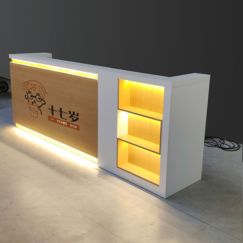Custom minimalist modern milk tea shop dessert bread bunk shop collection silver counter front desk water bar water fruit shop washstand