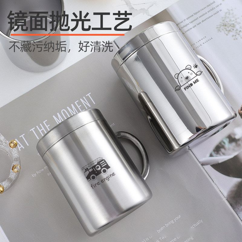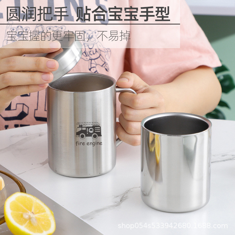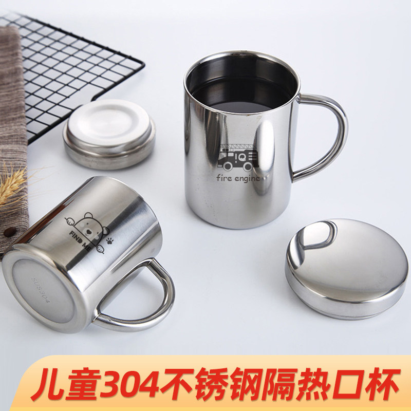 Children's water glass kindergarten stainless steel small cups baby drink water anti-fall and burn home gargling cup drinking milk cup