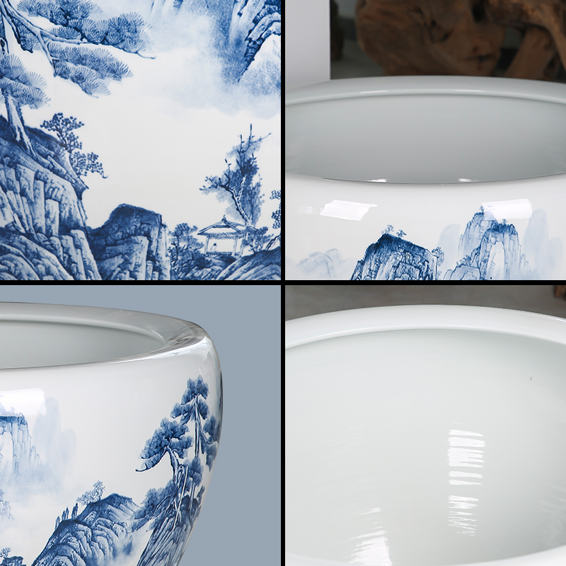 Blue and white porcelain fish tank home garden lotus water lily tank Jingdezhen ceramic large tank landscape extra large koi water tank