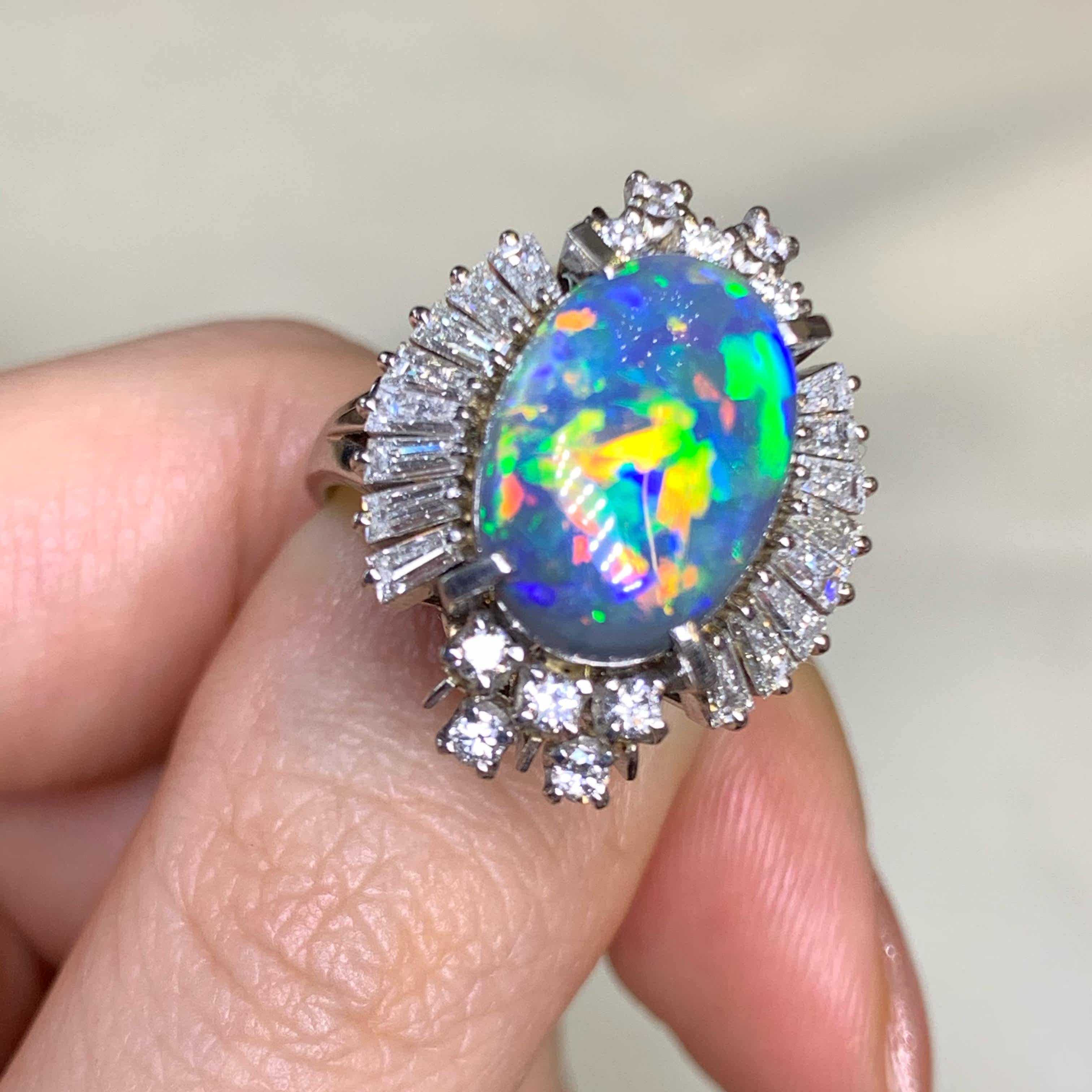 Opal island collection level colorful black opal ring diving to see tropical fish