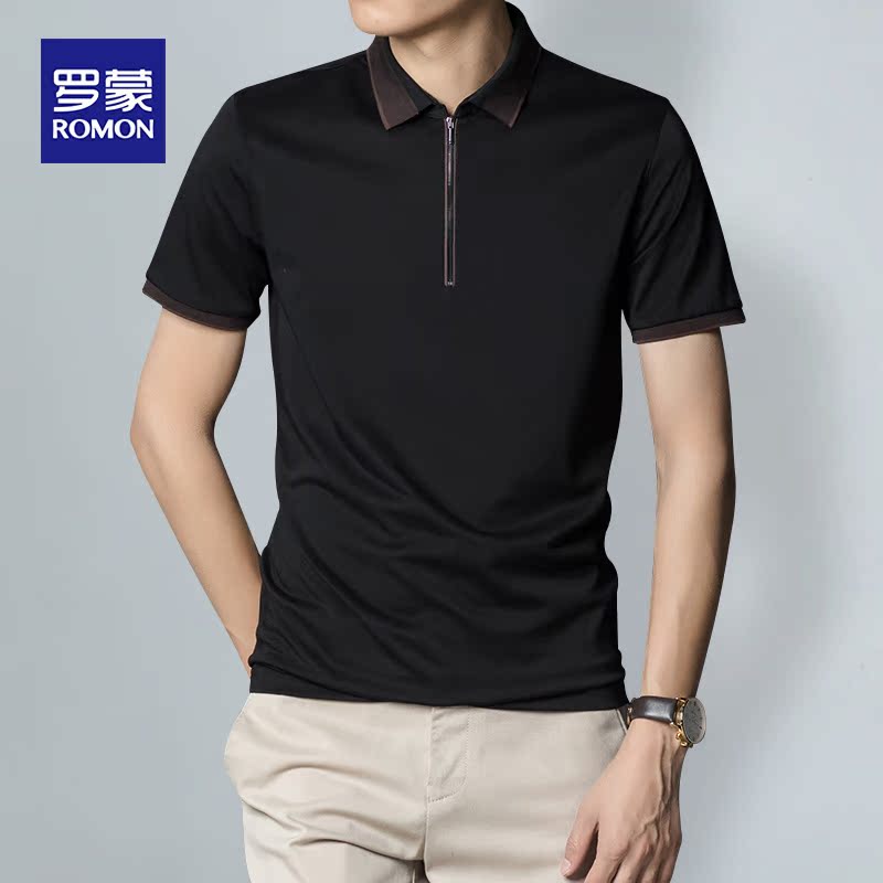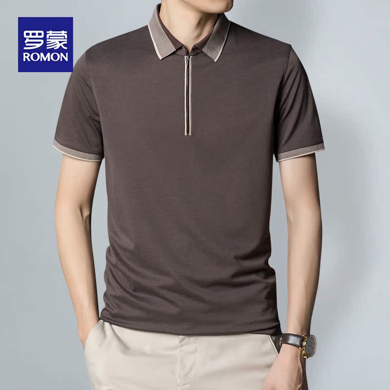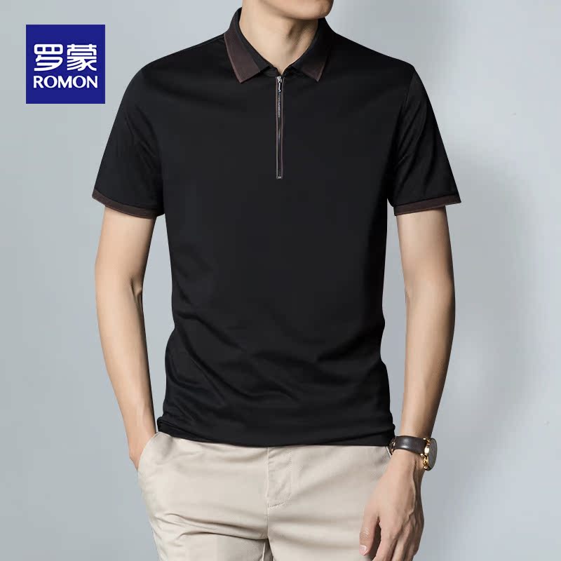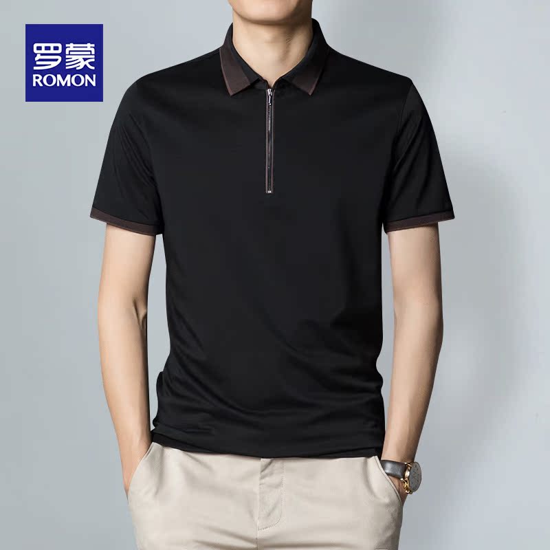 Romon summer new mulberry silk short-sleeved t-shirt Casual business fashion trend slim simple base Polo shirt