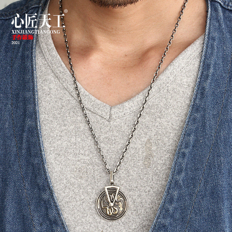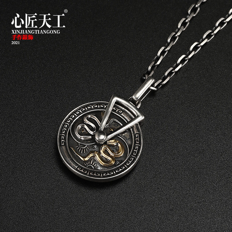 925 pure silver necklace male boomer with accessories Yin and Yang Five lines of amulet pendant single pendant rotating double serpentine ornament female