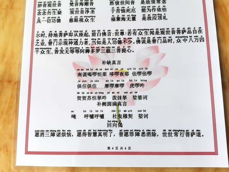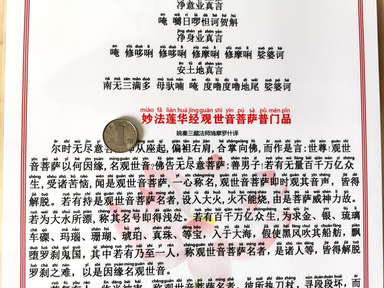 A4 printed Guanyin Bodhisattva Pumen beginner with Zhuyin version to recite the Foka