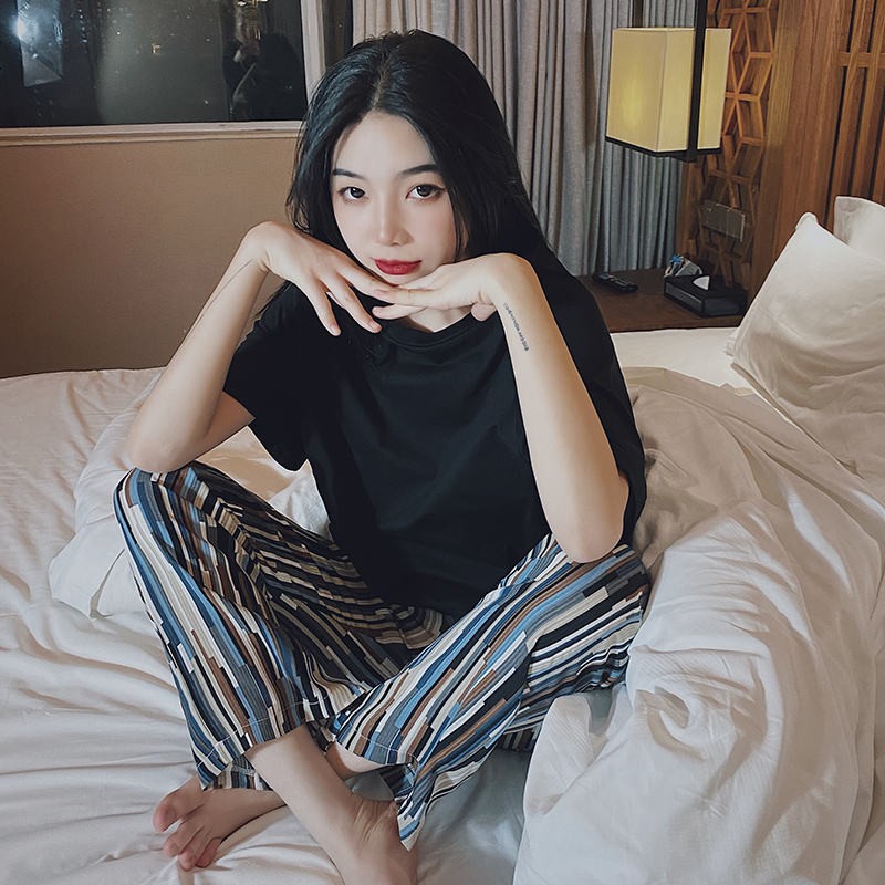 House deer original summer new short sleeve trousers pajamas women's ins Wind Net red explosive 2021 home clothing set