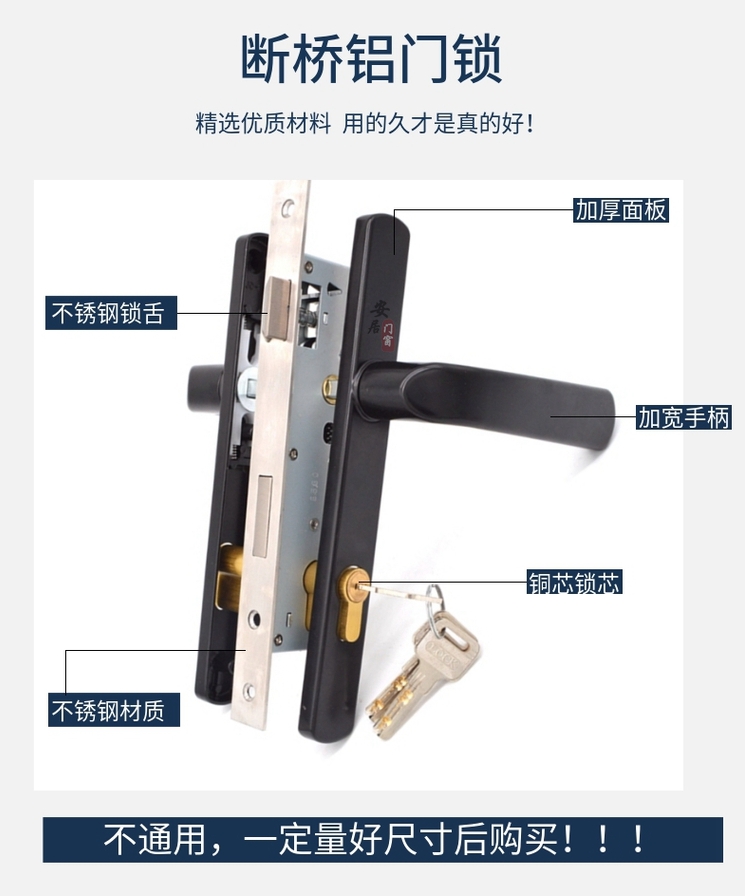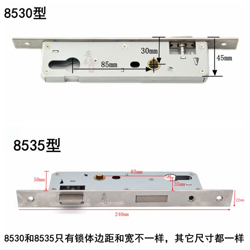 Breakthrough aluminum alloy door lock 8530 8535 flat door double - sided handle lock old balcony glass door lock