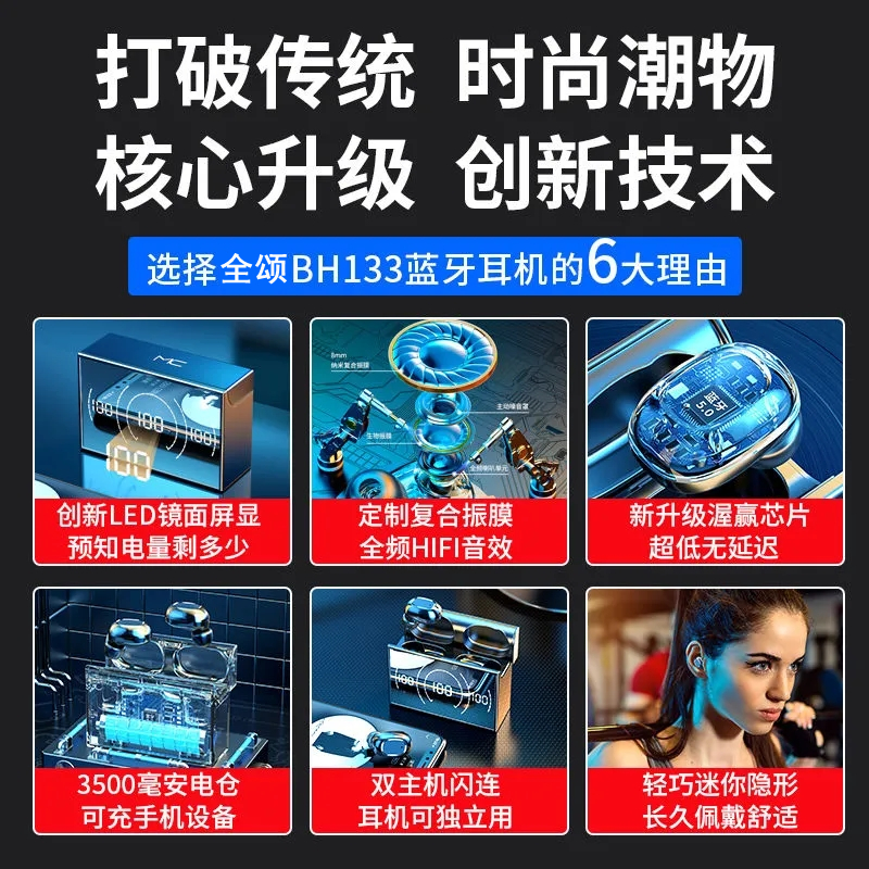 High-end Genuine Wireless Bluetooth Headphones Binaural Sports Running Mini Mini Extra-long Standby Sequel Listening Song In-ear Noise Reduction Applicable Apple Huawei Android Vivo Xiaomi Oppo Mobile Phone Generic
